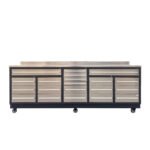 The Pro Series 9-FT 20 Drawer Workbench is a heavy-duty, commercial-grade solution perfect for garages, repair shops, automotive businesses, and industrial settings. It features a fully welded steel frame with a durable powder-coated finish for long-lasting protection. The stainless steel tabletop and front drawer panels provide a sleek, professional look while ensuring excellent resistance to corrosion and wear, making it ideal for demanding environments.
