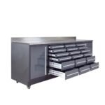 The TMG-WB918 Pro Series Workbench is our toughest workbench model and features 18 drawers plus a durable 1.5mm stainless steel work surface. If you want to experience premium storage, functionality, and mobility—this workbench is for you.